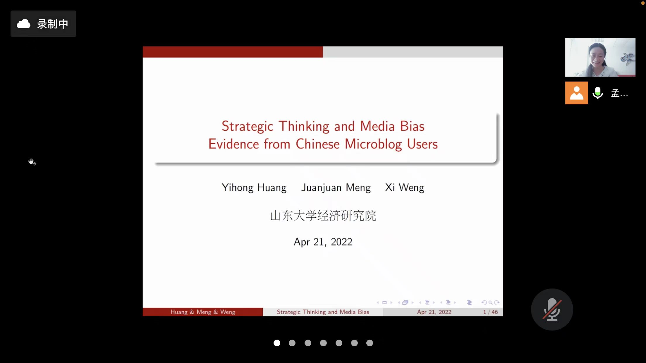 2022年4月21日,山大行为实验经济公开分享荟2022年第2期(总第18期)在腾讯会议线上平台召开,北京大学光华管理学院应用经济学系孟涓涓教授应邀做了题为“Strategic Thinking and Media Bias: Evidence from Chinese Microblog Users”的主题报告。痴女