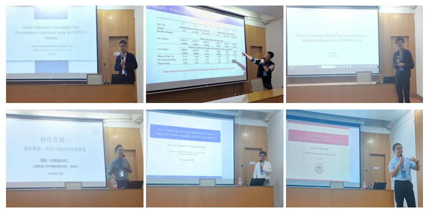 (威海)商学院吴贾教授报告题目为《School Dropout-Age Rainfall Shocks and Firstborn Girls’s Sacrifice of School Opportunities》,讨论学龄期遭受降雨天气冲击对男女教育差距的影响。