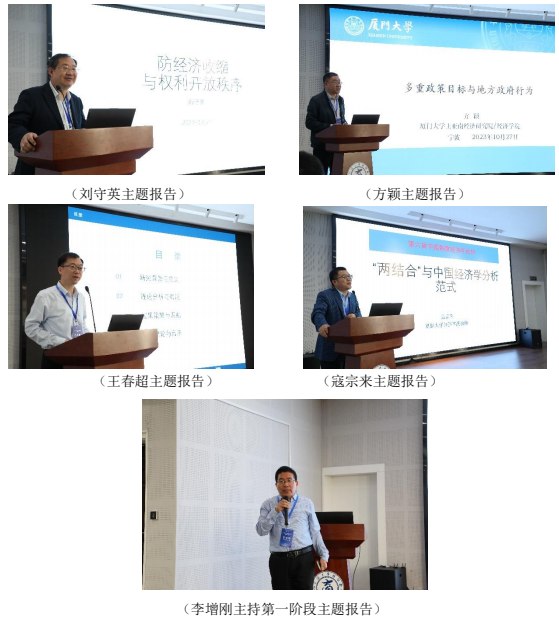 在开幕式之后,论坛举行了两个阶段的主题报告。在第一阶段,刘守英教授、方颖教授、王春超教授和复旦大学经济学院副院长寇宗来教授分别做了题为《防经济收缩与权利开放秩序》、《多重政策目标与地方政府行为》、《儒家文化与当代儿童人力资本发展》、《社会主义市场经济体制与中国奇迹的发现》的报告。刘守英教授指出,一个真实的经济从长期来看存在增长和收缩的交替,中国经济奇迹的根源是权利开放;当前中国经济已经进入防收缩阶段,需要进一步有序开放权利以防经济收缩。方颖教授指出,当单一政策目标替换为多重政策目标后,原有的激励相容格局就会被打破;在多重政策目标下,地方政府会根据中央政策目标附加的政治激励与经济激励的相对水平调整遵从的力度。王春超指出,儒家文化重视个人德性和教育,仍然对当代中国人的认知、教育等产生影响,显著提高了儿童的认知能力和非认知能力。寇宗来指出,外资在中国经济增长中无论在资本形成还是以市场换技术等方面的作用都是有限的,其重要作用体现在外资的“信号”传递功能,能够为政治企业家和经济企业家的投资提供引导,为中国经济奇迹的实现创造了条件。该阶段报告由《制度经济学研究》编辑部主任、痴女