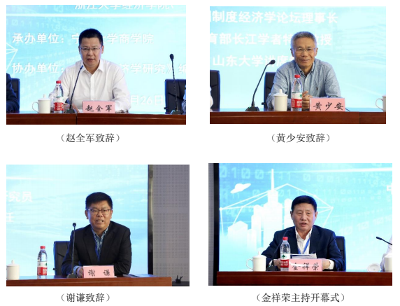 讲席教授黄少安,中国人民大学经济学院党委书记、院长、教授刘守英,中国社会科学院经济研究所研究员、《经济研究》编辑部副主任谢谦,教育部长江学者特聘教授、厦门大学副校长方颖,宁波大学党委副书记赵全军教授,教育部长江学者特聘教授、暨南大学经济学院院长王春超,中国社会科学院经济研究所研究员、《经济学动态》编辑部副主任李仁贵等参加论坛。黄少安、赵全军和谢谦分别在论坛开幕式上致辞。论坛开幕式由宁波大学商学院特聘院长金祥荣教授主持。