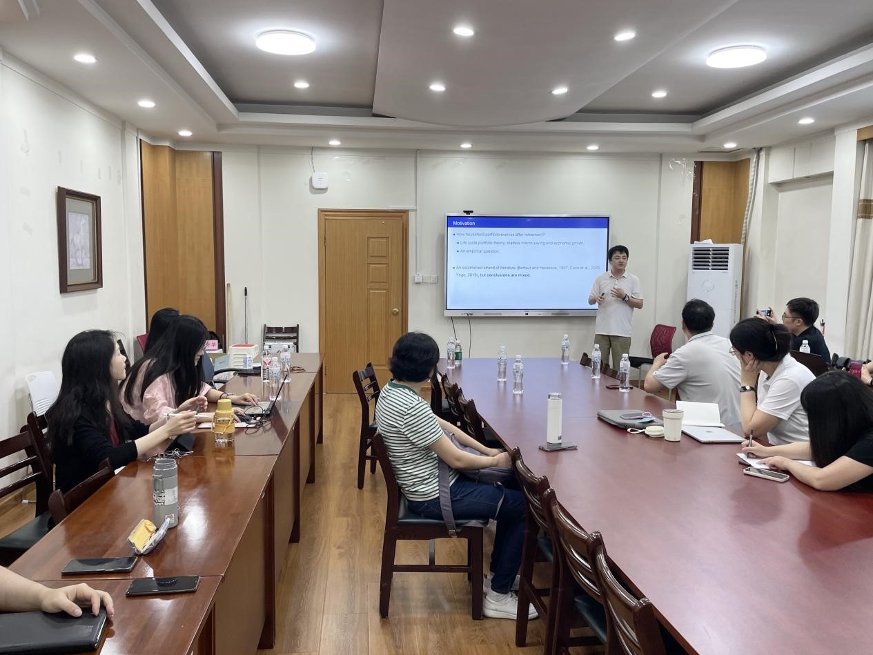 邀请北大博雅青年学者、北大国发院经济学副教授(长聘)黄炜作题为“Effects of Retirement on Household Portfolio Choice”的学术报告,报告由梁超研究员主持,学院部分老师和学生参加本次学术报告。