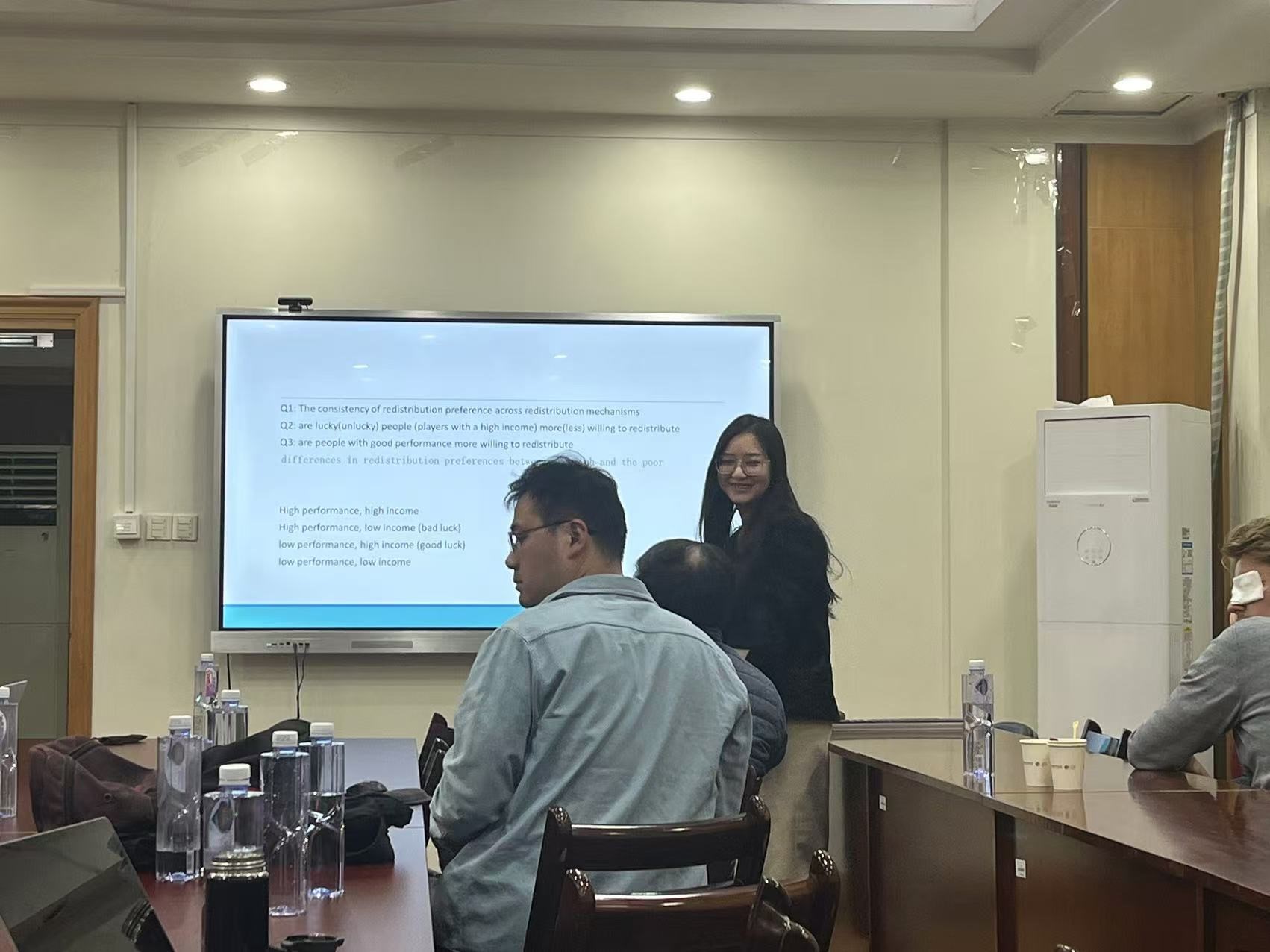 会议期间,Marie Claire Villeval教授还特别为学院从事行为实验研究的研究生提供了研究设计辅导,并与行为实验团队成员进行了深入的合作交流,为多项研究计划提供了宝贵的建议和帮助。