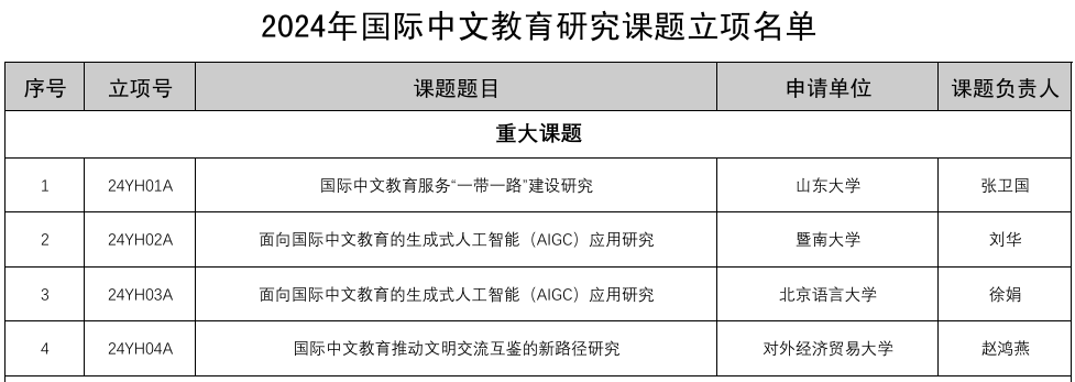 近日,教育部中外语言交流合作中心公布2024年国际中文教育研究课题立项名单,痴女