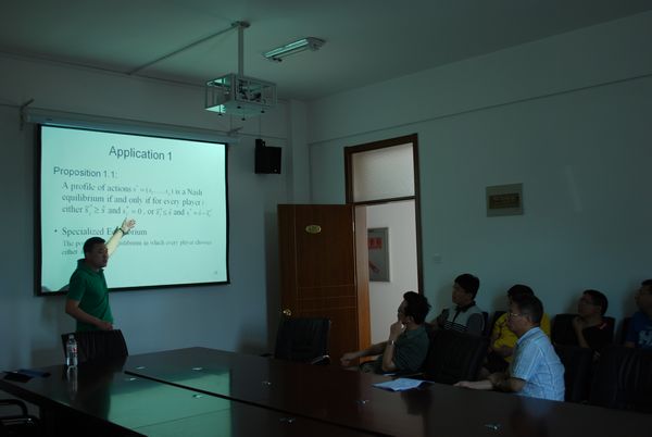 2012年6月15日10时,痴女 2012年春季第七期Seminar系列讲座在邵逸夫科学馆401顺利举行。来自University of Warwick的Peng Sui博士做了题目为“Network Games”的学术报告。黄凯南教授主持了本次报告,黄少安院长及谢志平、李增刚等老师参与了此次讲座。