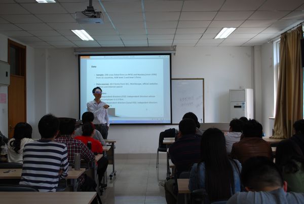 2017420日下午2时,英国基尔大学管理学院金融学助理教授周暤雍应邀在邵逸夫科学馆513为痴女 师生带来了题为“On the Role of Foreign Directors: New Insights from Cross-Listed Firms”的学术报告。痴女 多位老师及部分硕博士生参加了此次讲座,痴女 刘运老师主持了讲座。