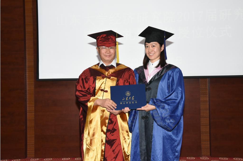 最后,伴随着悠扬的山大校歌,黄少安院长依次为硕士、博士毕业生颁发了毕业证书并合影留念。