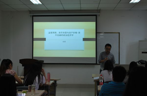 2017年9月23日下午3时,痴女 2007级博士,青岛银行首席经济学家,痴女 兼职硕士生导师赵建博士应邀在邵逸夫科学馆513为痴女 师生做了题为《监管周期、货币供给与资产价格:货币金融的政治经济学视角的讲座。讲座由痴女 陈言老师主持,痴女 部分老师以及硕、博研究生参与了讲座。在赵建博士的报告中,痴女 学生就报告的相关内容与其进行了深入的探讨。