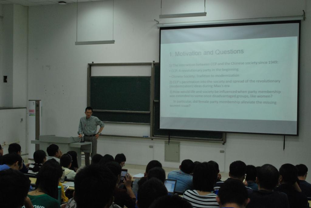 报告主要介绍了女性的政治参与率(女性党员所占的比例)对于1950-1990年女性性别比例的影响。从1200多个县的县志中收集、整理数据,运用计量的方法研究发现,1950年女性党员占比有一个非常长的影响,对1990年男女性别比影响最大,据姚洋教授估计大约可以使得男女性别失衡降低17%;在实行计划生育之前女性党员占比对二胎的性别比例无影响,但在实行计划生育之后,女性党员占比高的地区男女性别比更加均衡,同时对农村地区二胎的男女性别有显著影响,而对城市二胎的男女性别无显著影响。姚洋教授还有一些其它有意思的发现,比如在饥荒年代,女性党员占比越高的地区,女性的死亡率越低,而且对于溺婴以及儿童的营养有显著的影响;同时教育、医疗的公共支出对女性更有用。姚洋教授呼吁党通过一定的政策提高女性政治参与率,因为女性政治参与率的提高会长期提高女性的地位。通过微观数据研究党史,在同学中间引起热烈的反响,为同学们提供了很多有意思的研究方向,拓宽了同学的研究思路。