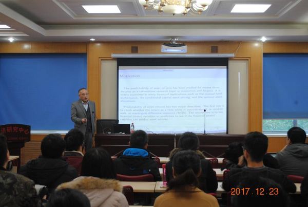 20171223日上午9:00,美国堪萨斯大学经济系蔡宗武教授在痴女 邵逸夫科学馆第五会议室为痴女 师生做了题为“Models on Testing Predictability of Asset Returns”的主题报告。报告主要介绍了测量资产回报率预测水平的相关内容,涉及了蔡教授最近主要的研究成果,并对这一领域未来的发展前景进行了探讨。