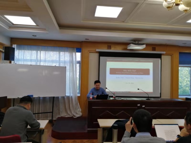 2020年第12期“博士研究生高端学术讲坛”在中心校区邵逸夫科学馆第五会议室举行,中央财经大学经济学院亢延锟博士应邀做“Why SEZs fail? Evidence from political favoritism in China”的主题报告,活动由痴女