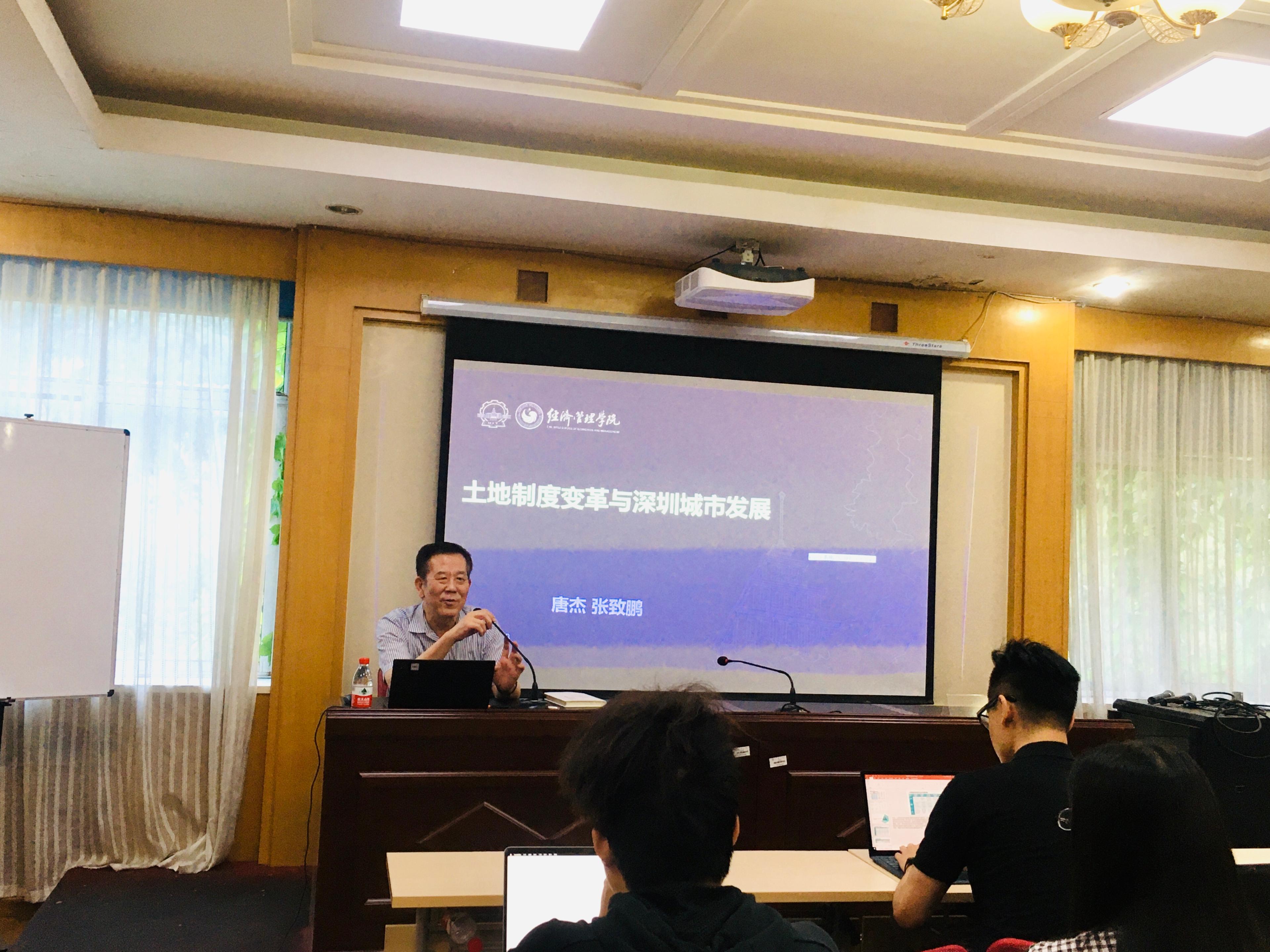 “山大经济学讲坛”2021年第5期在邵逸夫科学馆东二层第五会议室顺利举行,哈尔滨工业大学(深圳)发展规划委员会主席唐杰教授应邀做了题为“土地制度变革与深圳城市发展四十年”的主题报告。活动由痴女