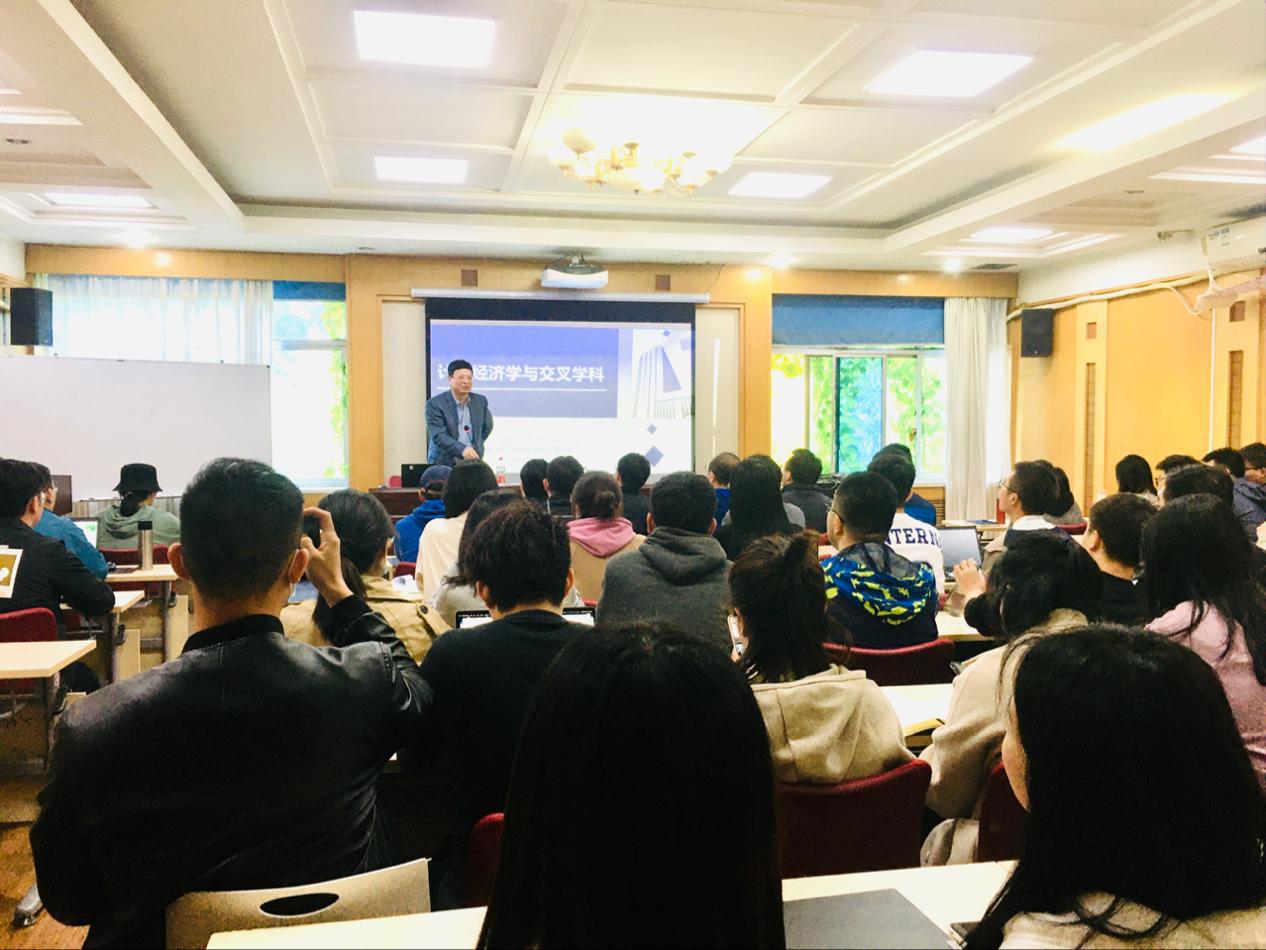 洪永淼教授强调,科学素养与人文素养共同构成了研究者不可或缺的品质要素。他对计量经济学研究范式的演变和现代经济学定量分析和“实证革命”的显著特点进行了简要介绍并对大数据和人工智能对研究范式的改变进行了分析。随后,洪永淼教授就通过丰富的实例对计量经济学这一实证经济学最主要的方法论及其源流与分支进行了深刻讲解。最后,他就数学、物理学、心理学、计算机科学等自然科学与经济学的交叉及计量经济学在经济学科学化中的重要作用做了深刻阐释。会后,现场师生还就具体问题中的模型设定与期刊投稿问题与洪永淼教授进行了热烈讨论。