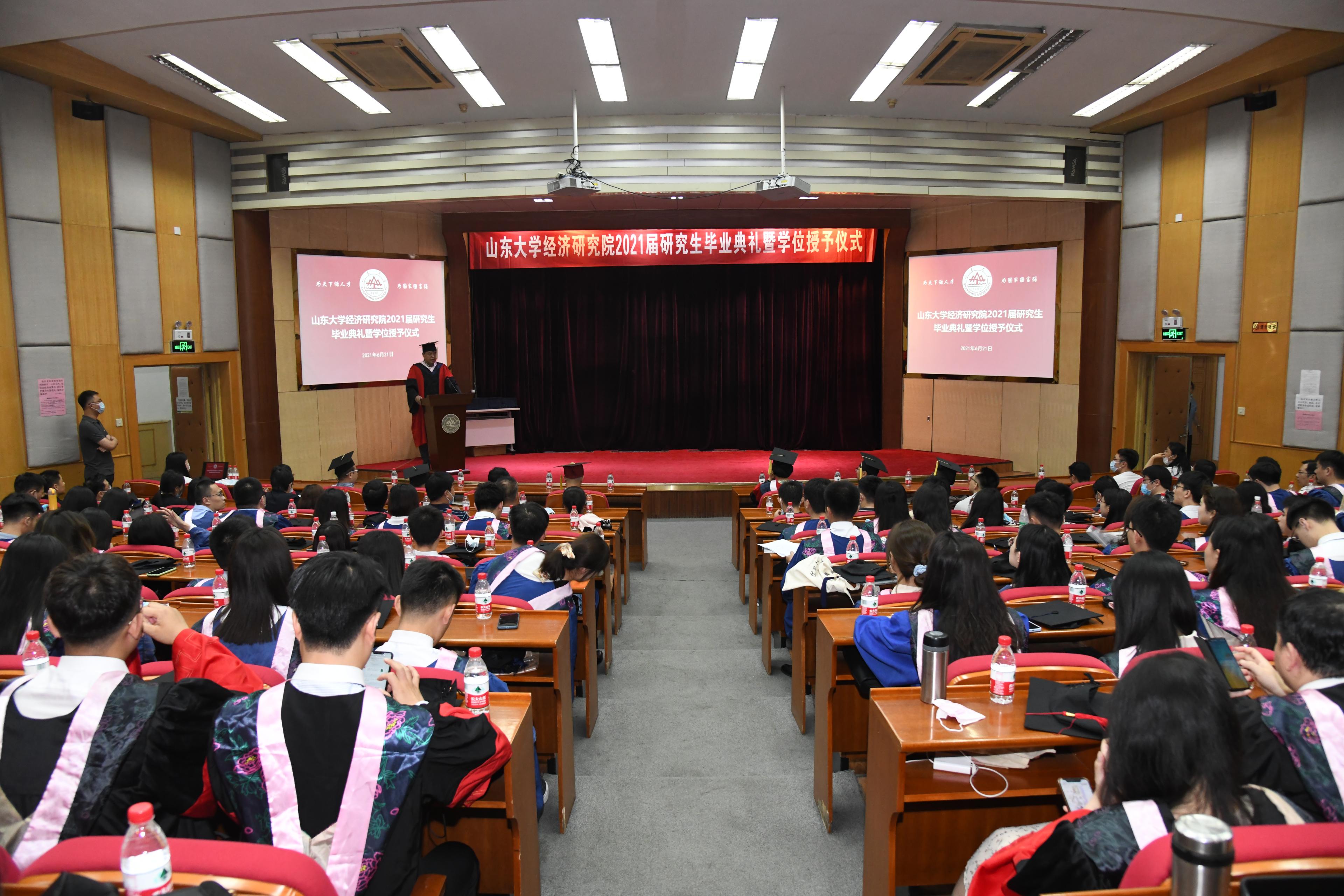 致辞后,黄少安院长为每位毕业研究生颁发学位证书并依次拨穗合影。在铿锵悠扬的《山大校歌》、《二十年后再相会》歌声中,毕业典礼顺利结束,各位毕业生的经研院时光画上了圆满句点。