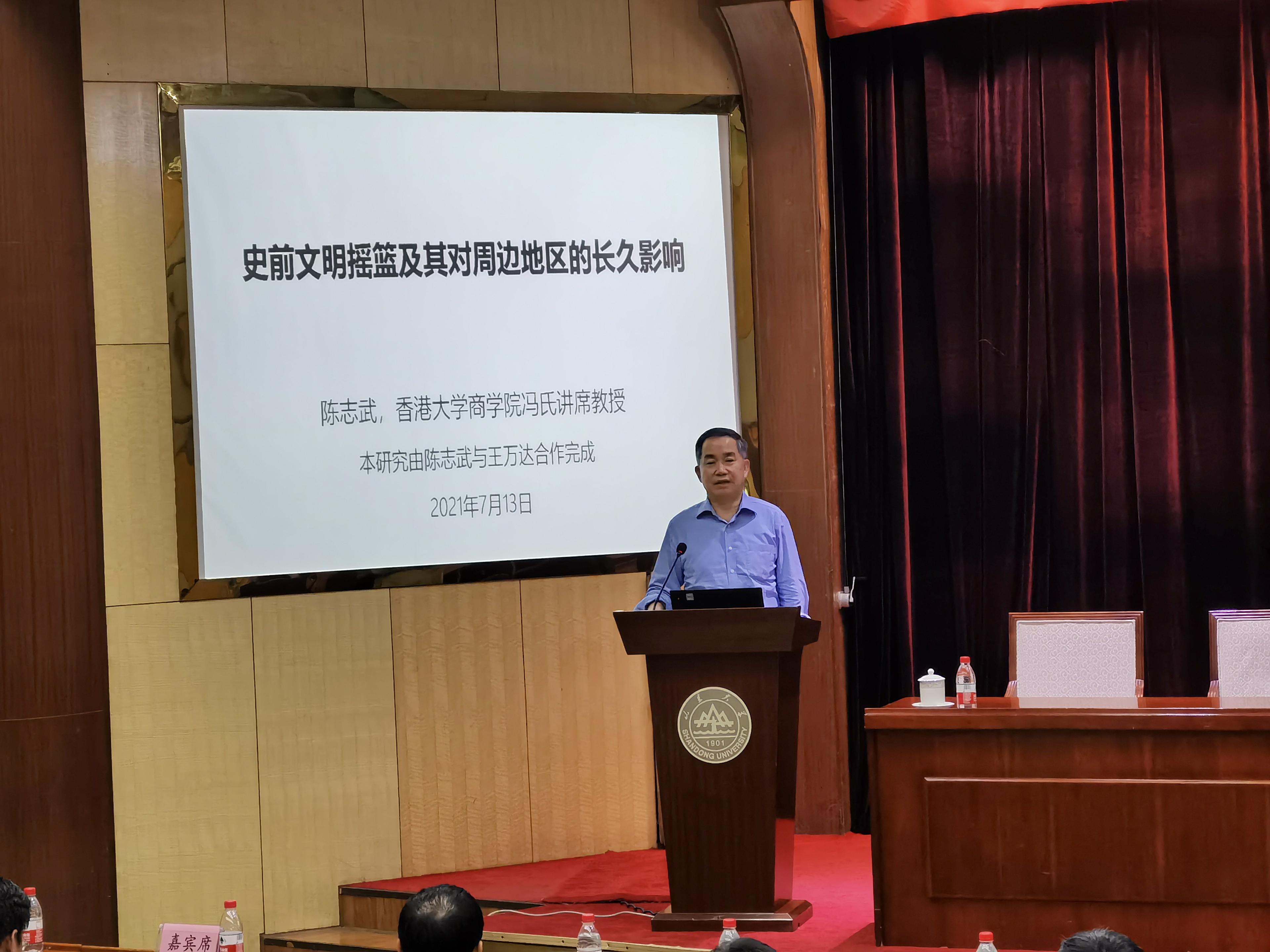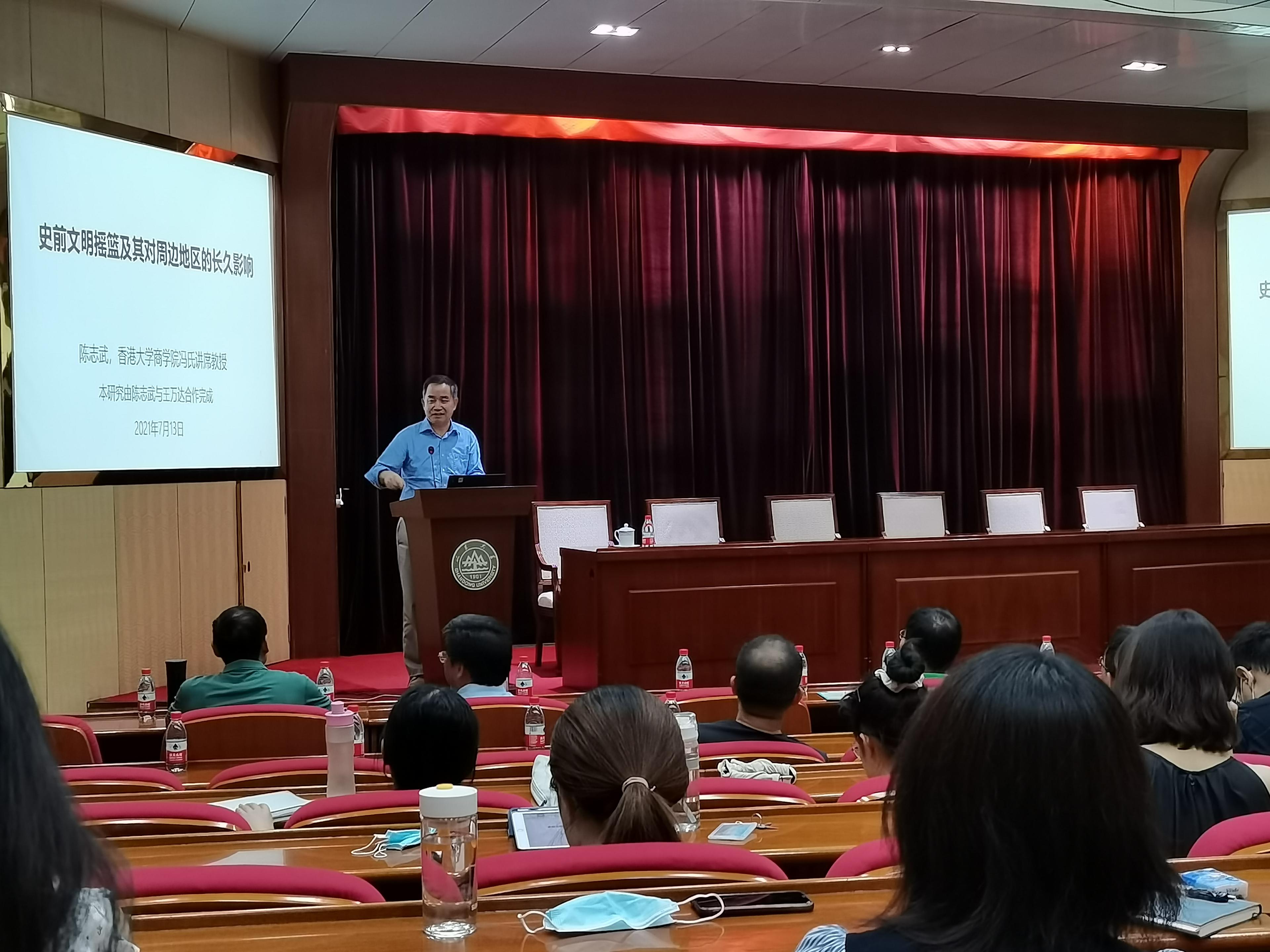 中心校区邵逸夫科学馆一楼报告厅举行。香港大学亚洲环球研究所所长、经济与工商管理学院金融学讲座教授、冯氏讲席教授陈志武应邀作“史前文明摇篮及其对周边地区的长久影响——今天一地之兴旺与四千多年前的关系”的主题报告,活动由痴女