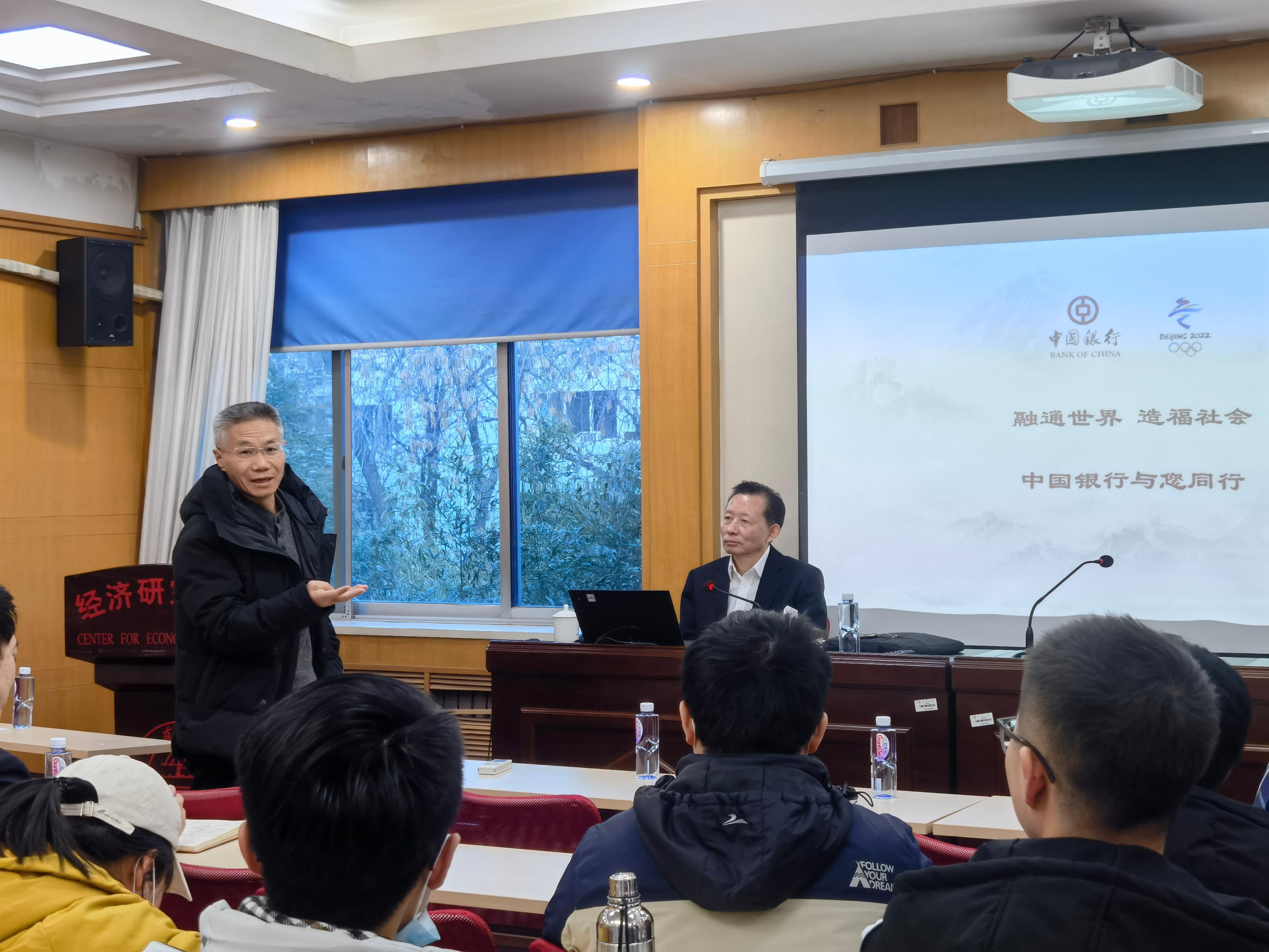 中心校区邵逸夫科学馆第五会议室顺利开讲,中国银行山东省分行行长徐效强应邀作“百年中行:光荣与梦想”的主题报告,活动由教育部“长江学者”特聘教授、痴女