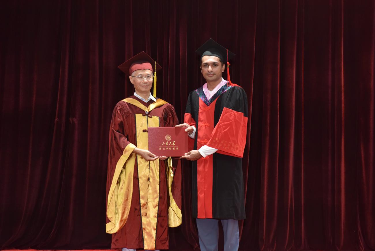 毕业典礼在庄严的国歌中拉开序幕。首先,教师代表,姜树广博士致辞,姜老师用“祝贺”、“不舍”和“嘱托”三个词概括整个发言。“祝贺”:一是祝贺毕业生顺利毕业,二是祝贺毕业生家长儿女成才,三是祝贺所有各位老师桃李成熟;“不舍”是不舍毕业生将离开山大经研院的大家庭,希望毕业后大家仍常回来走动;“嘱托”毕业生在今后的工作生活中能够保持乐观、保持学习和保持信念。