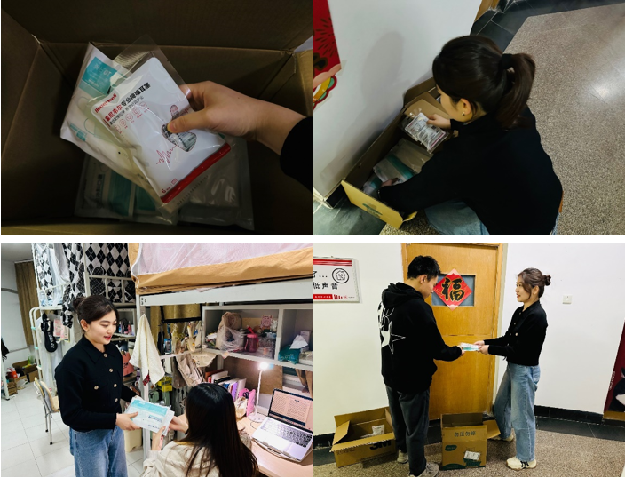 2023级学硕团支部、2023级专硕团支部一同发起了校园关爱行动:各团支部给各位老师和同学准备了口罩、耳塞等物资,其中,同学们的物资由各团支部的书记以宿舍为单位发放给各位同学,老师们的物资由辅导员老师负责发放。学硕、专硕团支部希望通过这次行动,能够与老师和同学们共同应对这些挑战,创造一个更加宁静、健康的学习和生活环境。