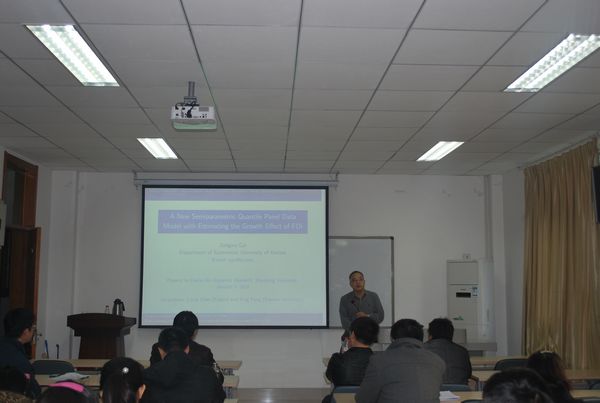 513教室做了题为《A New Semiparametric Quantile Panel Data Model with Estimating the Growth Effect of FDI》的讲座,本次讲座由黄少安院长主持,痴女