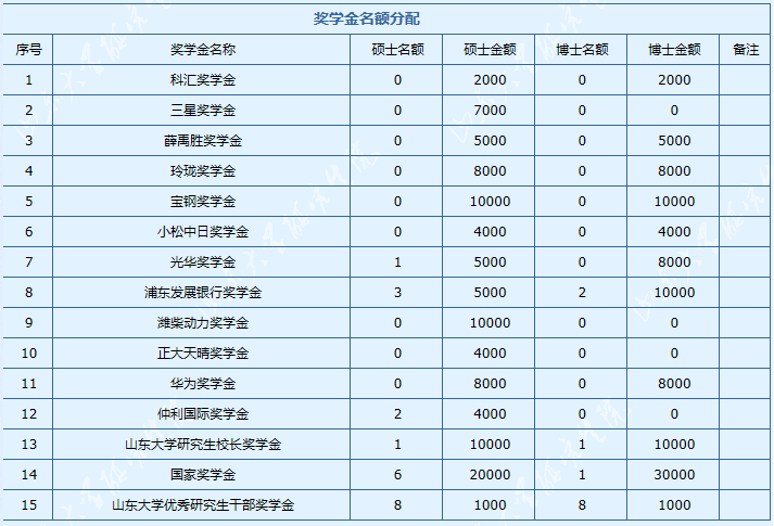 二、学院奖学金名额分配情况