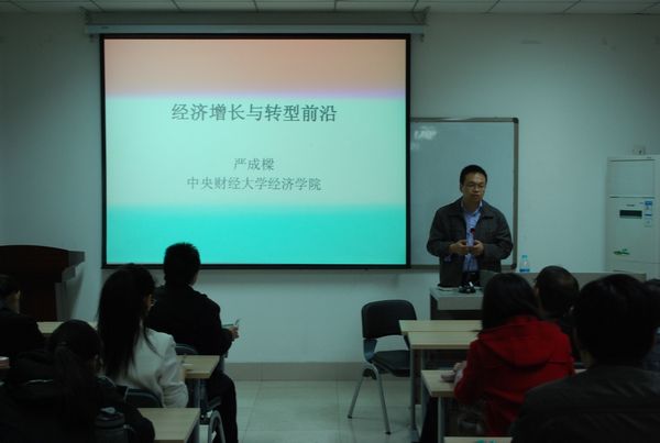 2015年3月27日下午18时30分,中央财经大学经济学院严成樑副教授在邵逸夫科学馆513教室为学院师生做了题为《经济增长与转型前沿》的专题讲座。学院部分教师和硕、博研究生听了讲座。
