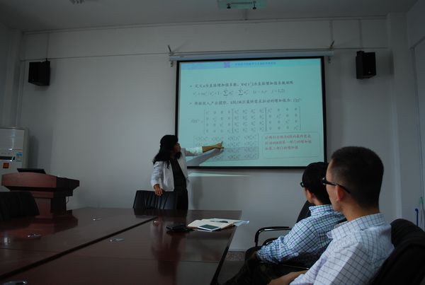 2015年9月11日下午2点30分,中国科学院数学与系统科学研究院研究员、国家杰出青年基金获得者杨翠红研究员在邵逸夫科学馆401教室与痴女 师生分享了题为全球价值链与APEC区域贸易增加值核算的专题报告。副院长林晨老师主持了报告会。