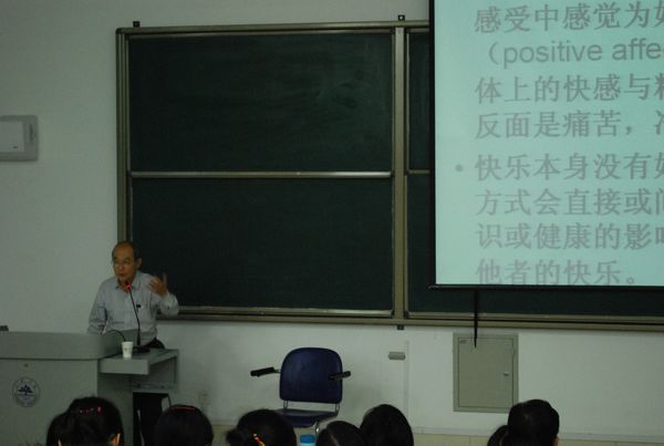 2014年12月12日晚7点,新加坡南洋理工大学黄有光教授应邀来痴女 做了题为《快乐之道:个人与社会如何增加快乐》的精彩报告。本次报告在知心楼C座201举行,痴女 蒋金山副教授出席并主持讲座。讲座深受广大师生欢迎,讲座现场人头攒动,座无虚席。 黄有光教授首先简述了什么是快乐,指出一个主体(例如人)的快乐是其主观感受中感觉为好的或正面的感受,而且快乐本身没有好坏之分,但有些享乐方式会直接或间接的增加/减少将来或他者的快乐随后,结合生物学以及神经科学对人为什么会有苦乐的感受做了详细的阐释,并提出快乐是绝对的,但受相对因素影响以及快乐是基数可量与人际可比的,虽然很难精确的论点。当前经济学研究中通常采用GDP来作为衡量快乐的指标,黄有光教授认为GDP并没有那么重要,而且具有一定的误导性,建议可以采用ERHNI等指标作为反映快乐程度的指标。那如何增加快乐呢?黄有光教授分别以A-L开头的12个不同的单词作为总结,分别包括attitude、balance、confidence、dignity等,简洁而精辟。最后,在同学踊跃的提问以及热烈的掌声中,本次的精彩报告圆满结束。