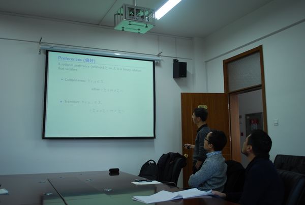 夏建明教授首先简述了自己的研究方向,回顾了在风险和不确定性下的决策理论,围绕期望效用(Expected Utility)和非期望效用(Non-Expected Utility),从风险(Risk)和不确定性(Uncertainty)两个角度阐述了其他学者在此领域作出的理论研究:从风险角度出发深入浅出的阐述了Prospert Theory,Rank Dependent Theory, Dual Theory等理论;从不确定性角度出发说明了Maxmin Expected Utility(1989),Multiplier Preferences,Variational Preferences(2006) ,Uncertainty Averse Preferences(2011),Choquet Expected Utility Theory(1989)Machina(2009)等案例悖论和模型。最后夏建明教授结合具体实际问题,介绍了自己研究的Comonotonic Convex Preferences模型,结束了本次精彩报告。
