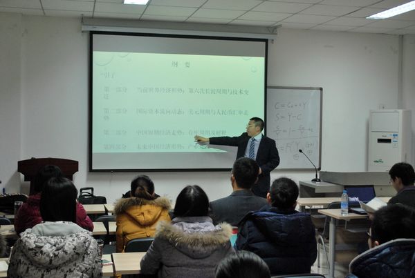 刘晓曙博士围绕“经济周期”和“未来经济走向”两大主题,就“当前世界经济形势:第六次长波周期与技术变迁”、“国际资本流向动态:美元周期及人民币汇率走势”、“中国短期经济走势:库存周期及其解释”、“未来中国经济走势:产业升级与产业结构变迁”四个维度进行了介绍和论证。刘晓曙博士的报告从实证的角度运用了大量的经济学数据和案例,对经济周期理论以及中美汇率等问题进行了深入浅出的讲解,阐释了当前世界经济虽然有局部波动,但整体态势处于上升期等观点。讲座历时一个半小时,活动现场轻松热烈。