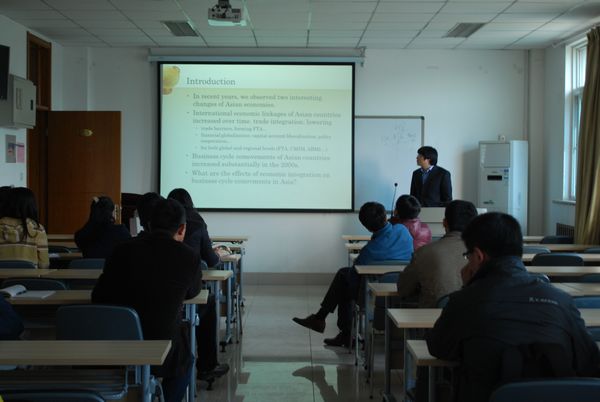 2013年4月9日16时,痴女 2013年第六期Seminar(总第36期)系列讲座在邵逸夫科学馆513举行。来自韩国首尔国立大学亚洲研究所的龚驰博士做了题目为《亚洲经济一体化与经济周期同步》的学术报告。本次报告由黄凯南老师主持,林晨、张进峰、孙立新和周洪涛老师等参加了此次讲座。