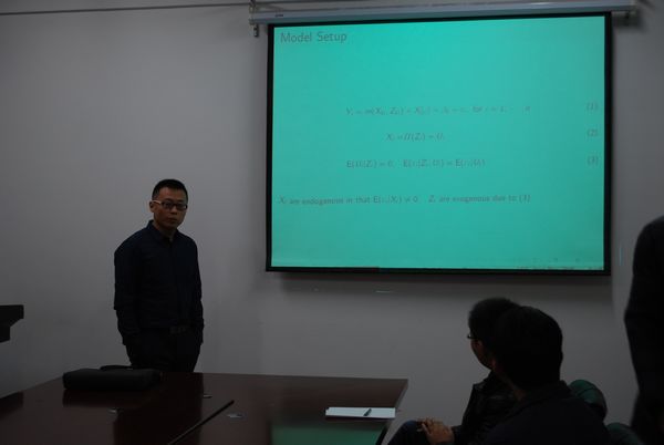 师生做了题为《Estimation of a Partially Linear Regression in Triangular Systems and an Empirical Application》的专题讲座,吴吉林老师主持了本次讲座。