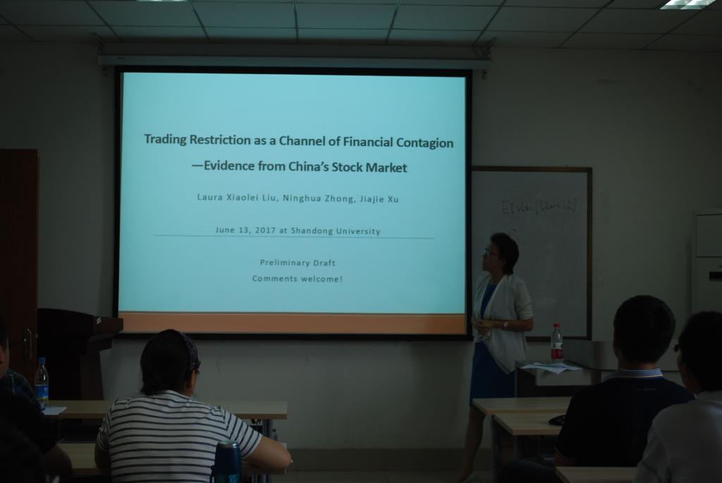 师生分享了题为“Trading Restriction as a Channel of Financial Contagion—Evidence from China’s Stock Market”和“Implicit Government Guarantee and the Pricing of Chinese LGFV Debt”的两篇工作论文,痴女