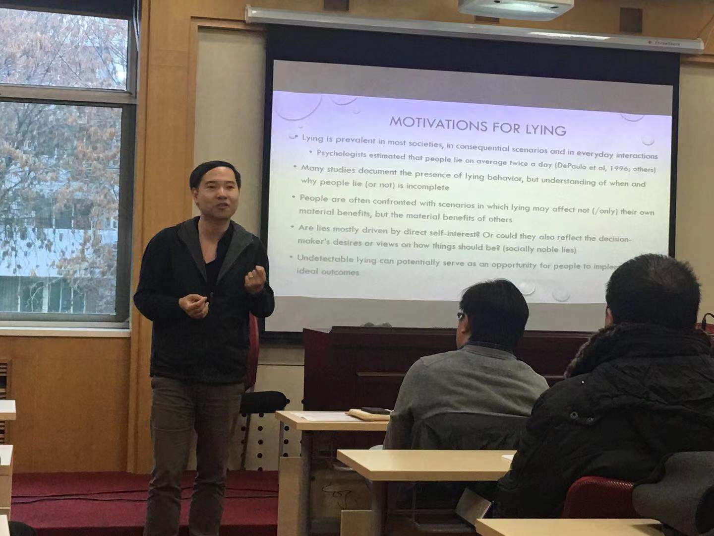 本次讲座围绕“说谎的动因是出于效率还是公平”展开。郑捷老师通过两部分实验来实现。第一部分实验探究了参加实验者的社会行为偏好。第二部实验分别在控制公平的条件下研究撒谎和效率的关系,以及在控制效率的前提下研究公平与撒谎的关系。发现具有强烈效率偏好的个人可能更倾向于公平, 而那些具有强烈公平偏好的个人可能更倾向于出于自身利益。