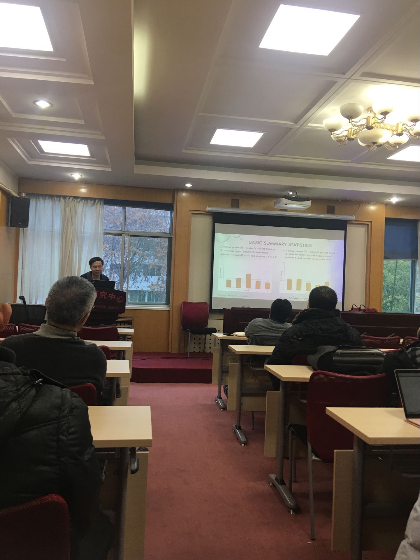第10期“博士研究生高端学术讲坛”在邵逸夫科学馆东二楼第五会议室举行,本期论坛来自清华大学经济管理学院经济系副教授,清华大学经济管理学院经济科学与政策实验室(ESPEL)常务副主任郑捷老师,做了题为“Lying for Efficiency or Fairness?”的学术报告。会议由陈言老师主持,黄少安院长及痴女
