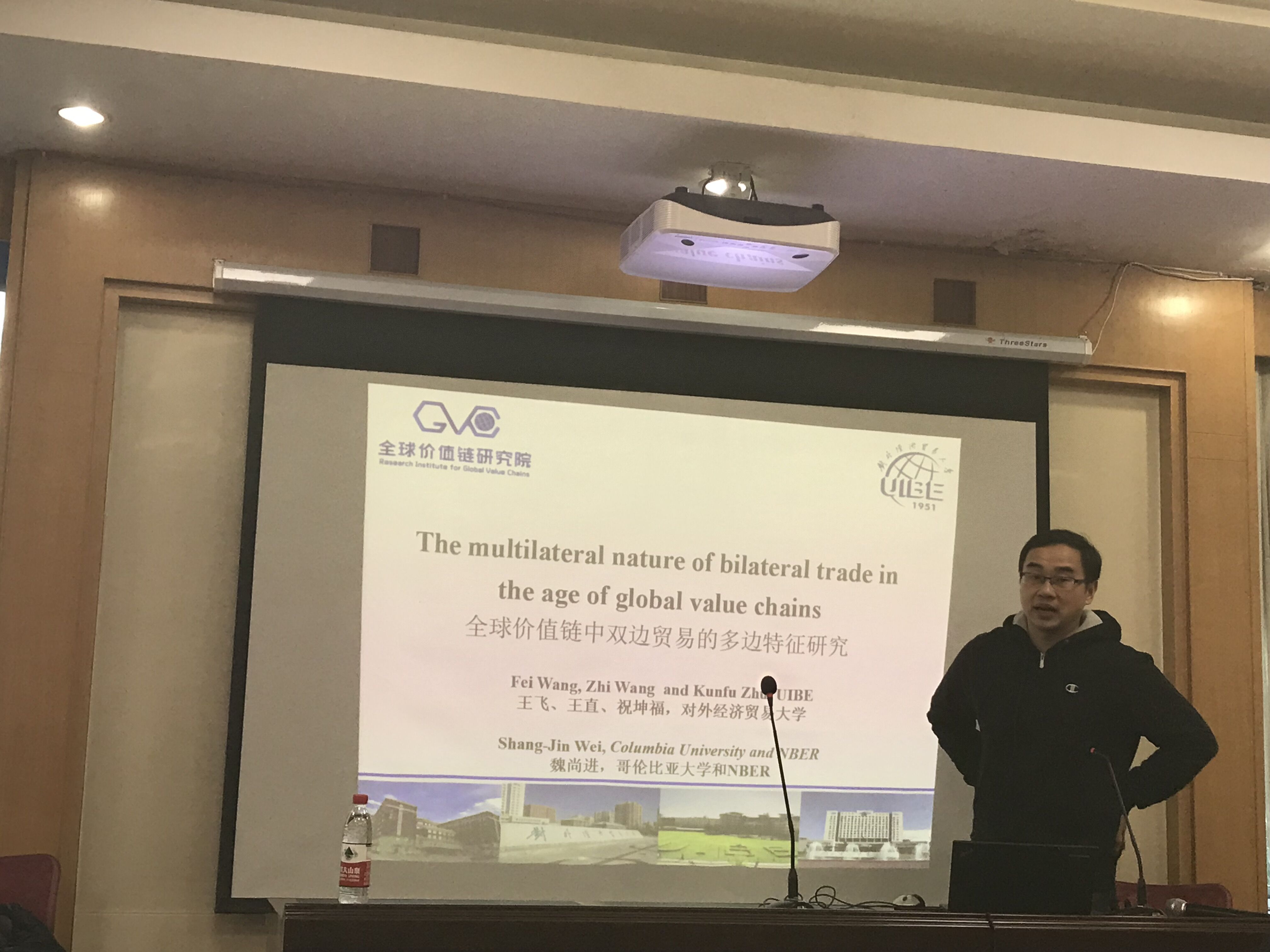 2019年1月6日下午两点,痴女 第12期“博士研究生高端学术讲坛”在邵逸夫科学馆东二楼第五会议室举行,本期论坛来自对外经济贸易大学的祝坤福副研究员为痴女 师生带来题为《全球价值链下双边贸易的多边效应》的报告。本次讲座由韦倩副院长主持,部分痴女 老师与硕、博士生参加讲座。