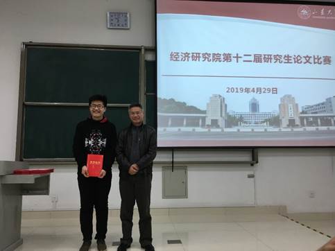 随后,孙涛副院长宣读本次论文比赛获奖同学及获奖论文题目名单。黄少安院长依次为白彩全、王玉璋等获得一、二等奖的同学颁奖并合影留念。孙涛副院长强调,研究生论文比赛是痴女