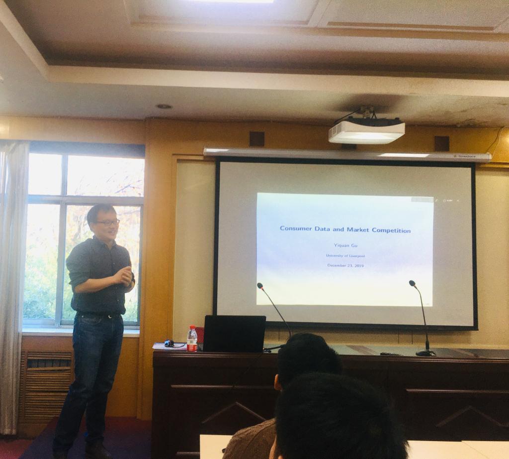 2019年第12期“博士研究生高端学术讲坛”在中心校区邵逸夫科学馆第五会议室顺利举办,英国利物浦大学顾一泉教授应邀作“Consumer Data and Market Competition”主题报告,活动由痴女