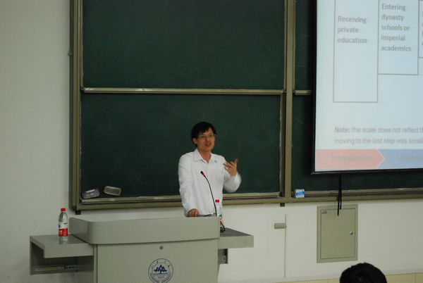 2016年5月4日晚上7点,香港中文大学柯荣住博士在知新楼C座201教室发表了题为“ 金榜题名靠关系吗?——明代中期科举录取的计量分析”的学术报告。痴女